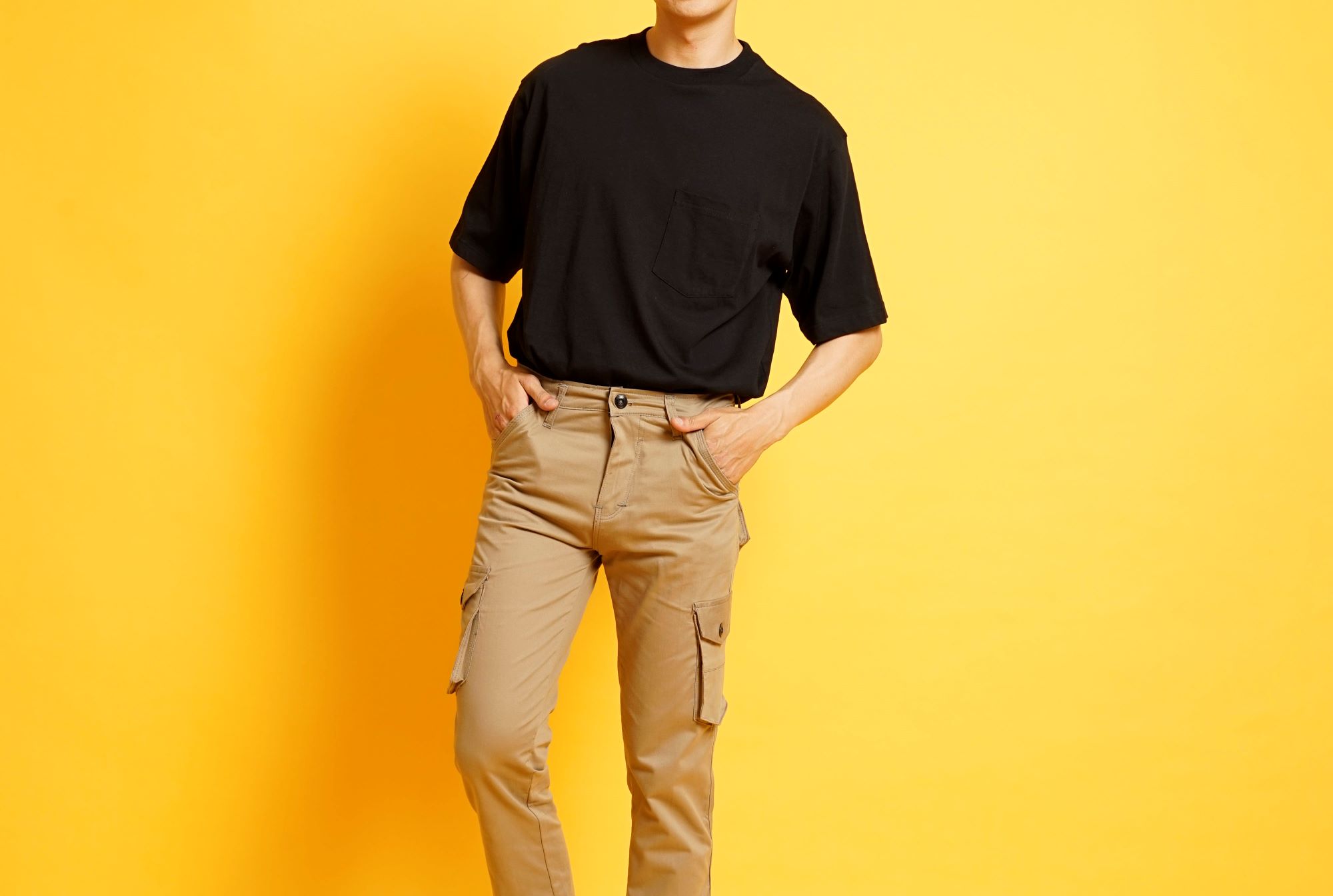 Untuk menciptakan tampilan yang lebih elevated, cargo pants bisa dipadukan dengan kaos polos berkualitas baik. Kombinasi sederhana ini sering menjadi dasar gaya minimalis modern karena terlihat effortless namun tetap fashionable.