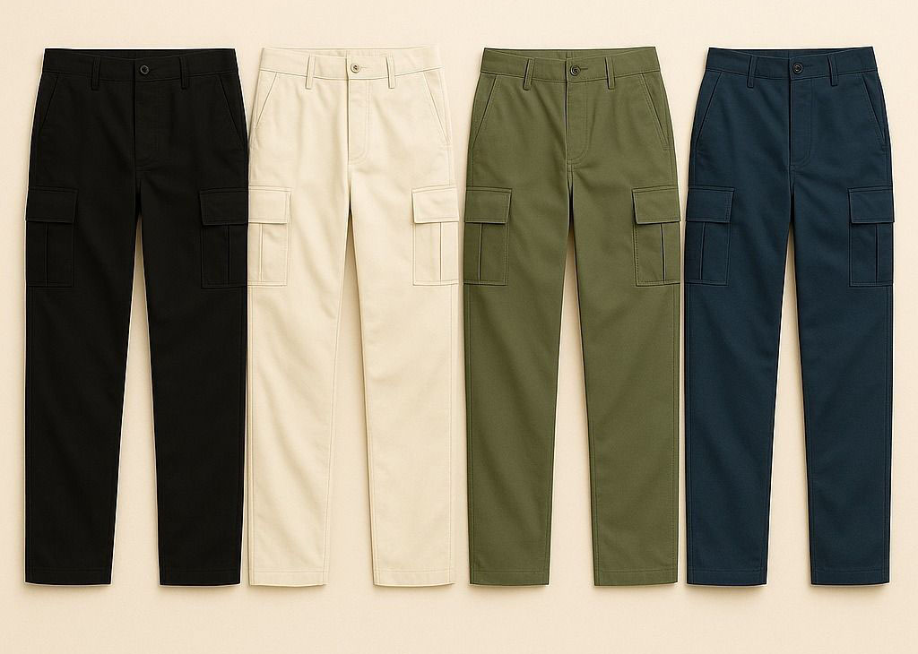 Banyak orang menganggap cargo pants sulit terlihat rapi, padahal kunci utamanya ada pada pemilihan bahan dan warna. Cargo pants dengan bahan yang lebih halus serta warna seperti olive, hitam, navy, atau khaki biasanya terlihat jauh lebih modern dibanding warna terlalu terang.