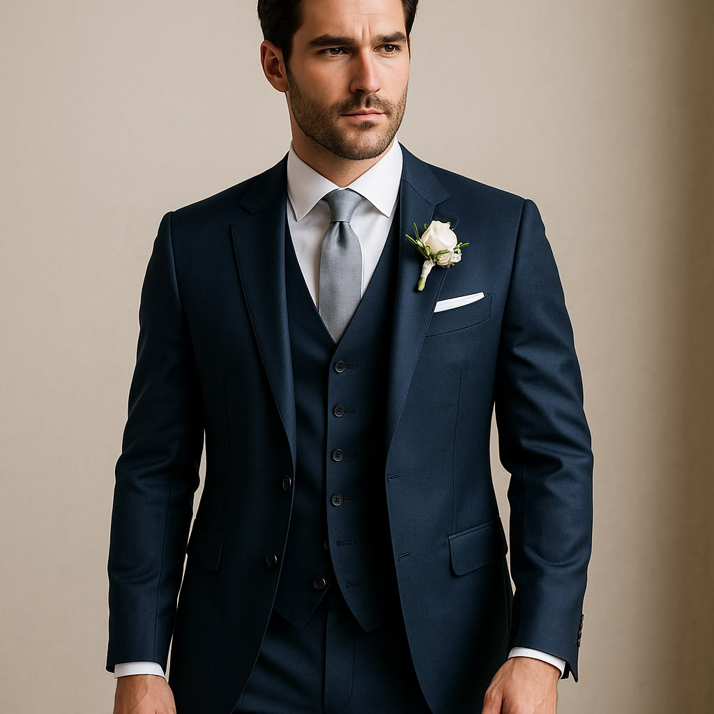 Jas navy merupakan salah satu warna paling fleksibel dalam fashion formal pria. Warna ini memberikan keseimbangan antara formal dan modern, sehingga cocok digunakan untuk berbagai acara seperti meeting, wedding, hingga acara semi formal.