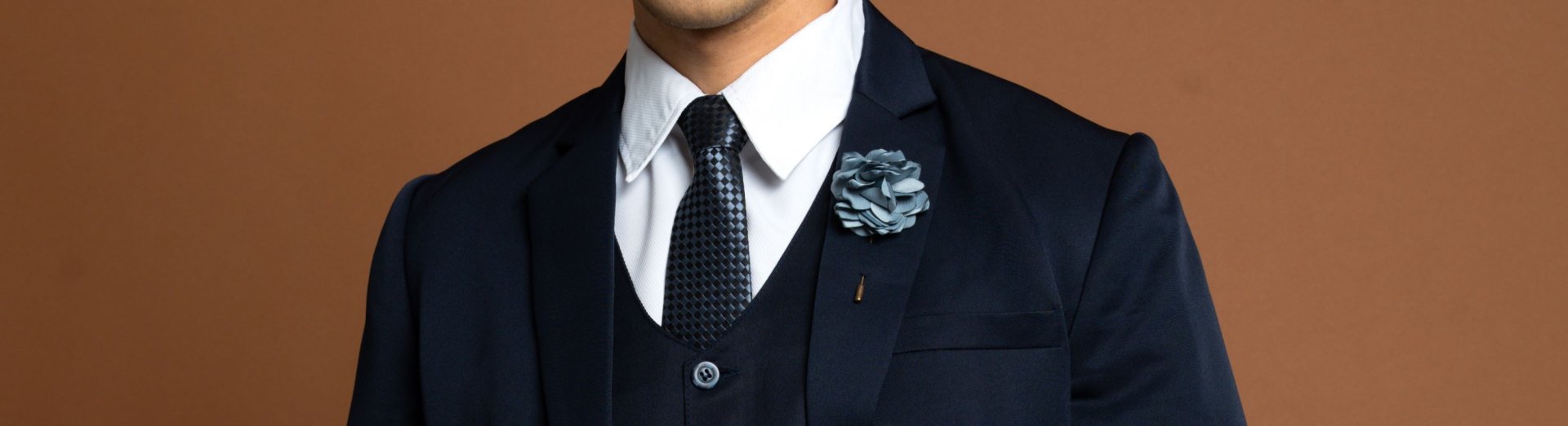 Jas hitam atau navy bisa terasa lebih hidup dengan tambahan warna dari lapel pin. Pilih warna yang kontras namun tetap elegan seperti gold, merah marun, atau navy satin.