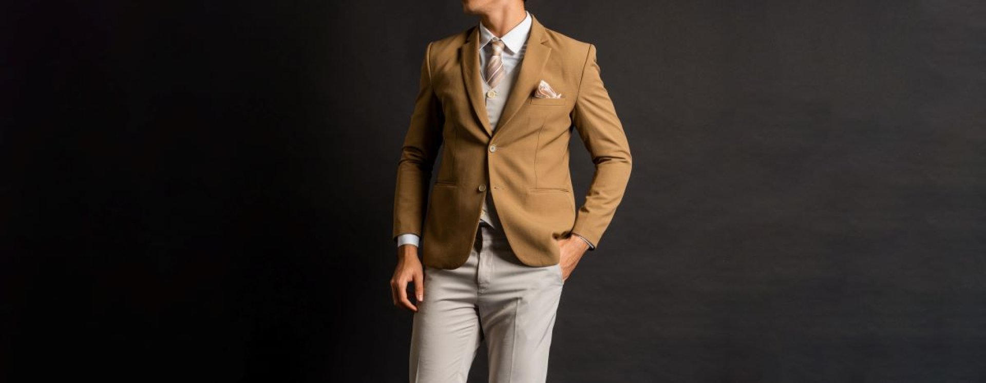 Cocok untuk acara outdoor atau resepsi siang hari. Padukan jas cokelat muda dengan kemeja broken white dan sepatu kulit warna tan untuk kesan hangat dan classy.