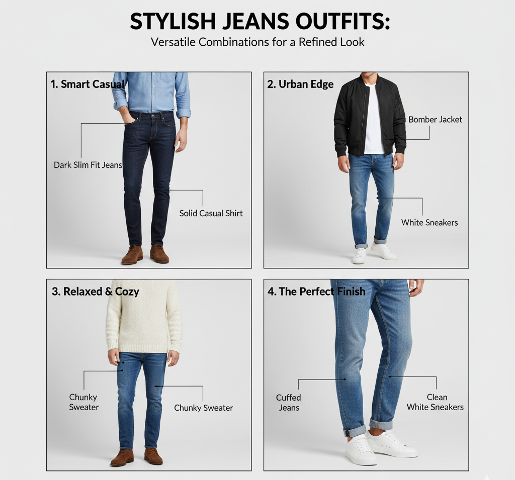 Jeans adalah outfit casual yang bisa tetap terlihat stylish kalau dipadukan dengan benar. Beberapa ide styling: