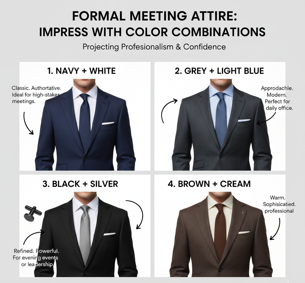 Outfit formal yang tepat akan memberikan kesan profesional saat meeting. Kombinasi warna berikut bisa jadi inspirasi: