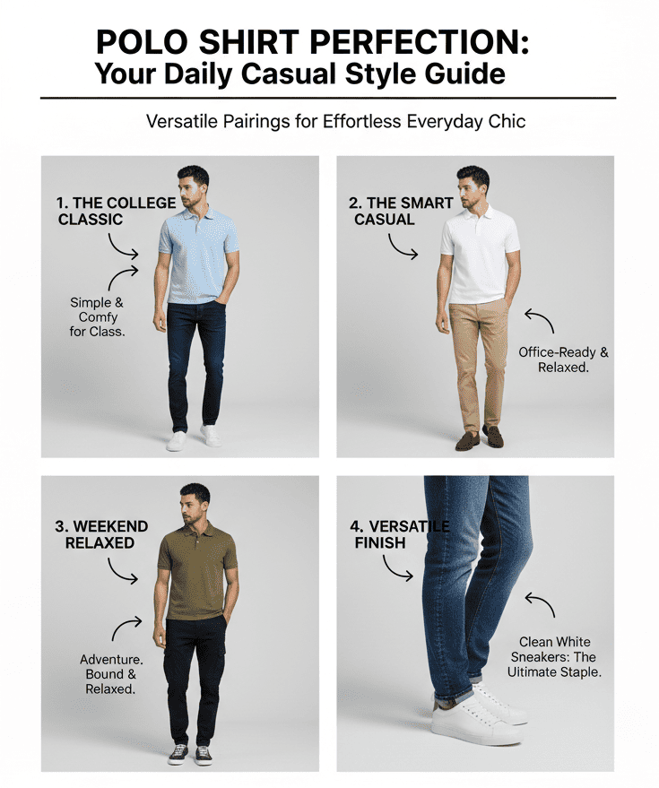 Polo shirt adalah pilihan praktis untuk tampil casual stylish setiap hari. Berikut ide paduannya: