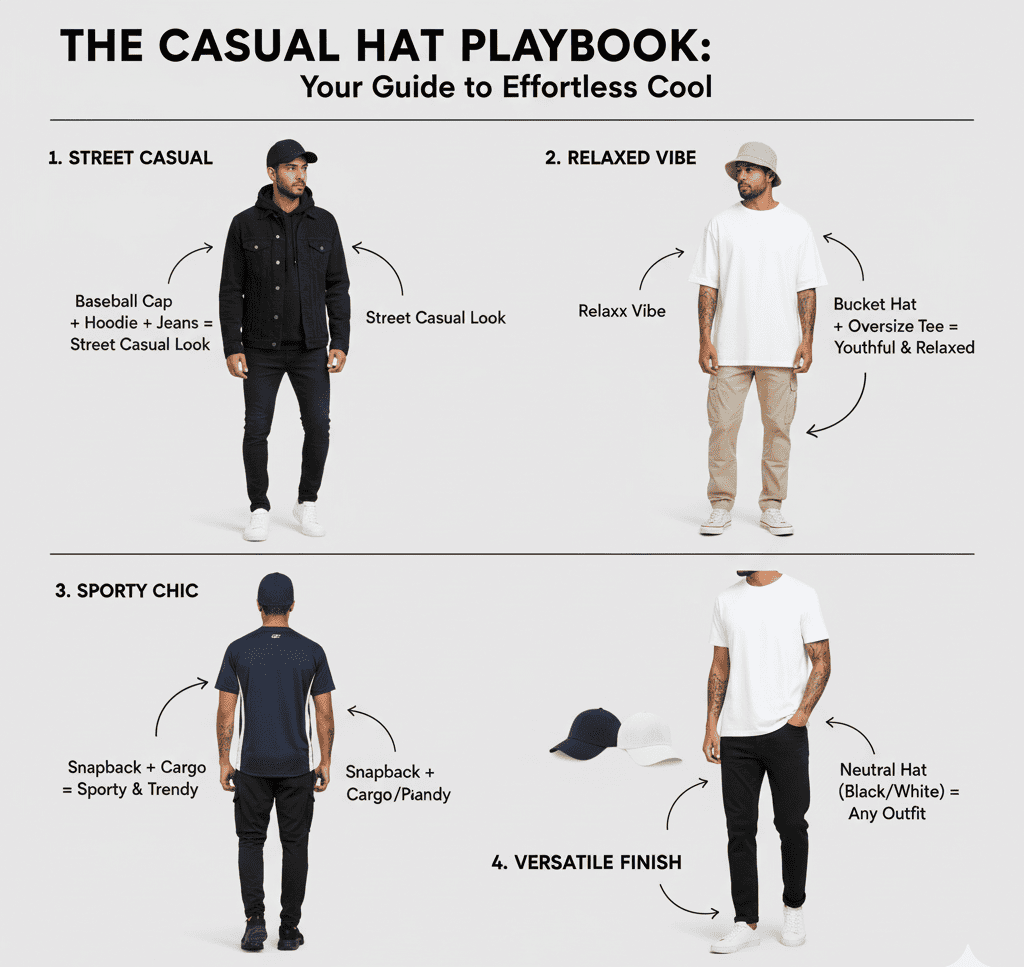 - Topi Netral (Hitam/Putih): mudah dipadu dengan outfit apa pun.