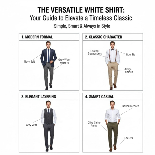 Dengan paduan yang tepat, kemeja putih tidak akan pernah membosankan dan tetap menjadi simbol gaya pria berkelas.