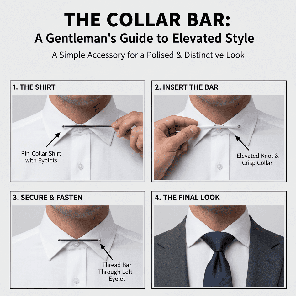 Detail kecil seperti collar bar bisa jadi pembeda antara tampilan biasa dan tampilan berkelas.