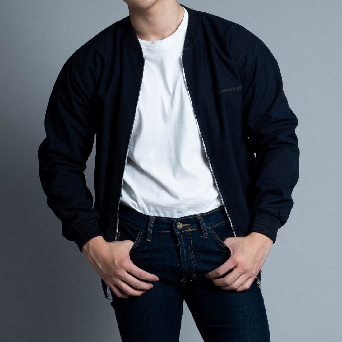 4. Jaket Bomber + T-Shirt: vibe sporty untuk nongkrong.