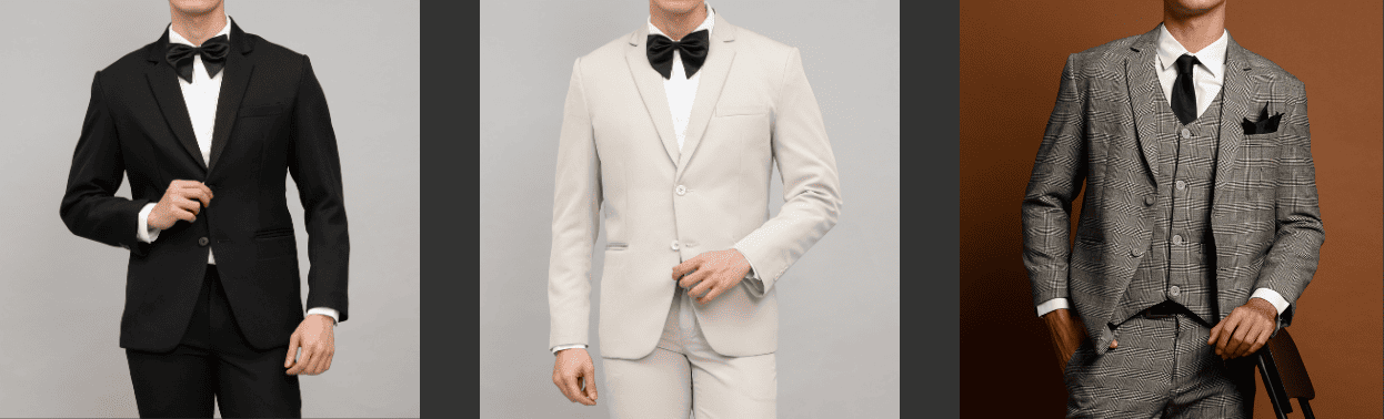 - Pilihan Lengkap: Tersedia berbagai model jas tuxedo, double-breasted, hingga slim fit.