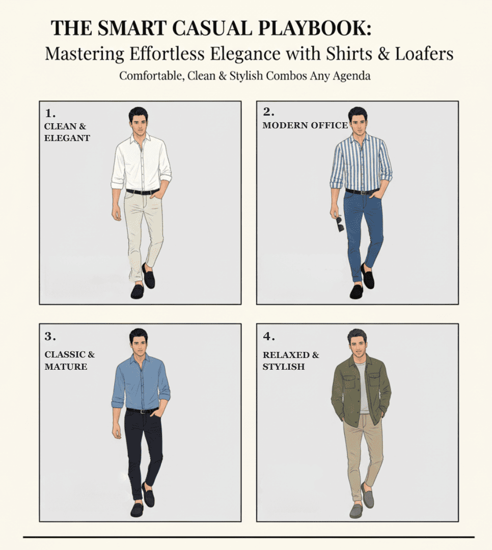 - Kemeja Casual + Loafers: vibe smart casual yang santai tapi tetap stylish.
