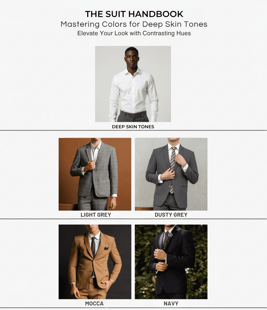 Warna kulit gelap cocok dipadukan dengan warna jas yang kontras atau sedikit lebih terang, sehingga menciptakan tampilan yang balance. Berikut rekomendasi warna kulit gelap: