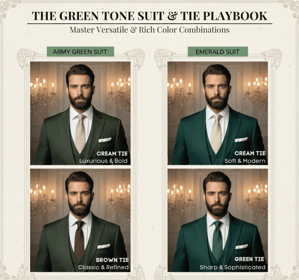 5. Jas Army / Emerald + Dasi Cream, Hijau, atau Brown