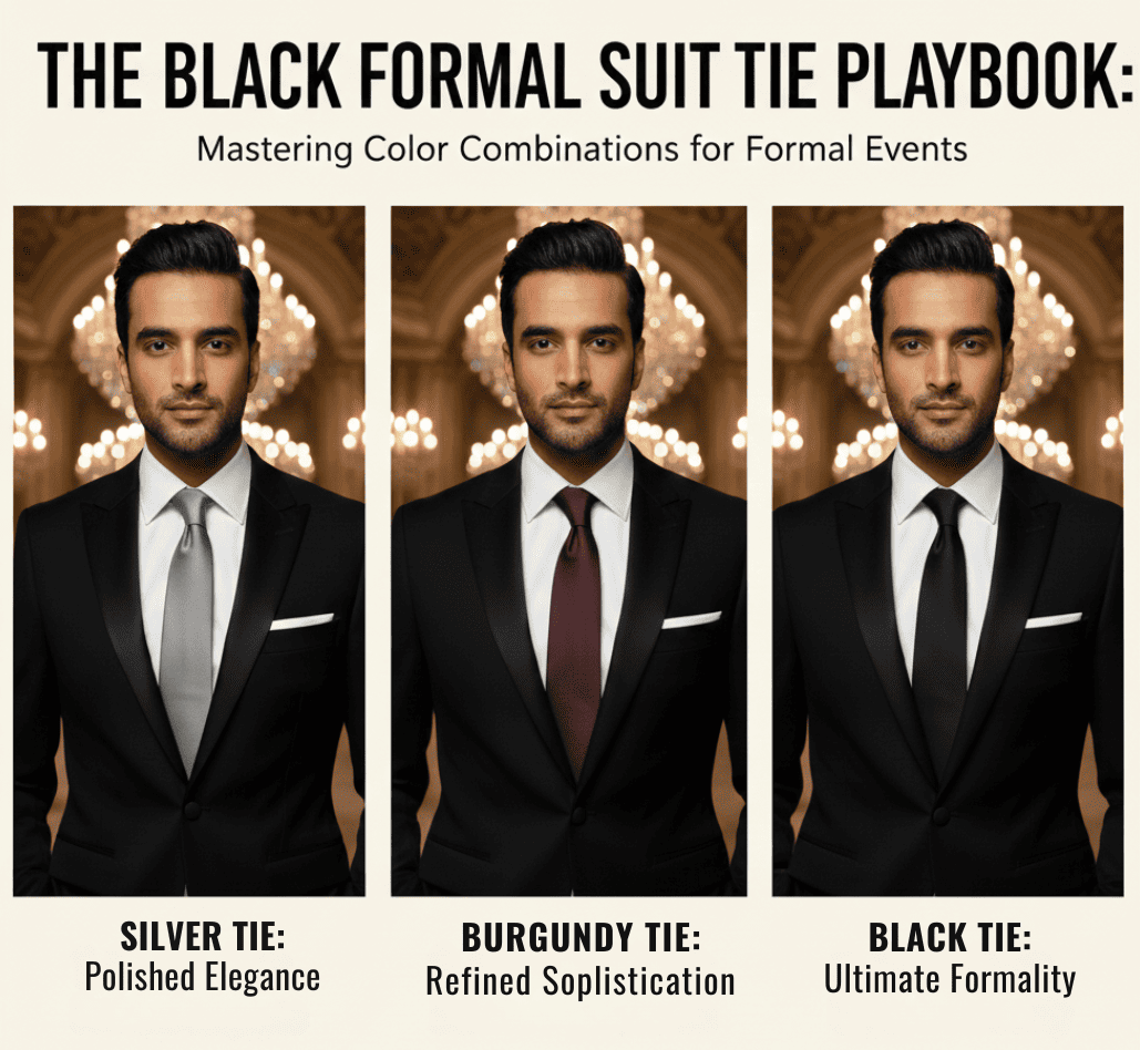 Jas hitam itu klasik dan paling formal, jadi pasangannya harus warna yang elegan juga.