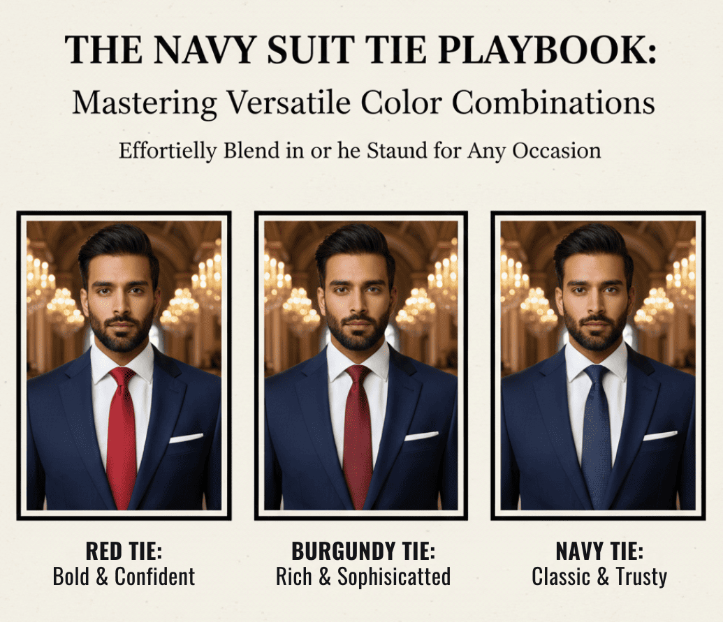 2. Jas Navy + Dasi Merah, Burgundy, atau Navy