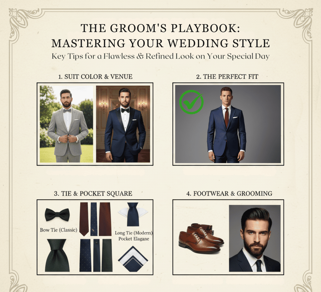 - Night wedding hitam atau deep navy. - Pastikan fit jas presisi