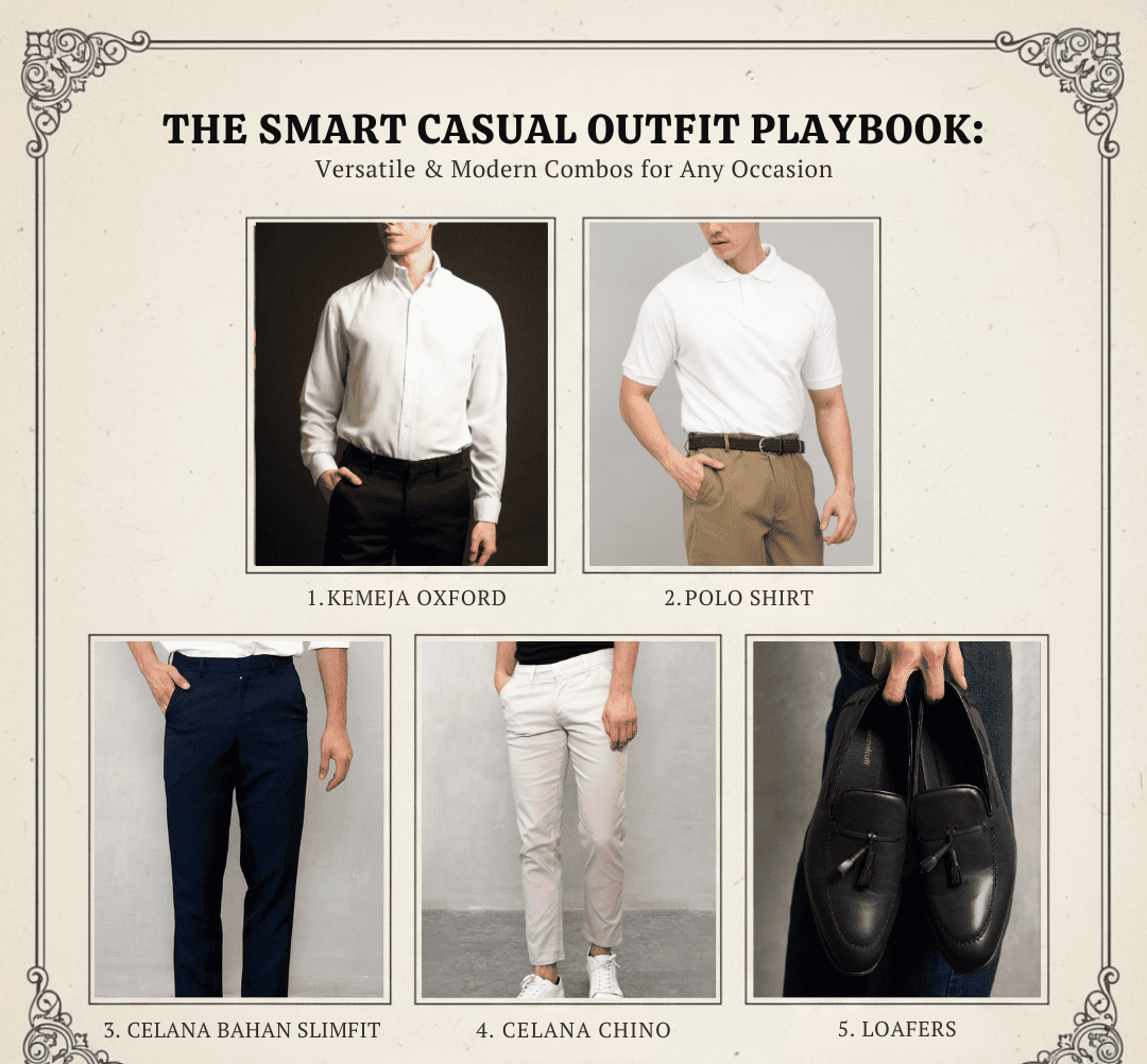 Smart casual menggabungkan kerapihan formal dengan kenyamanan casual cocok untuk kuliah, meeting santai, ngedate, hingga acara semi-formal. Berikut item wajib smart casual beserta alasan dan panduan mix & match agar penampilanmu selalu on point.