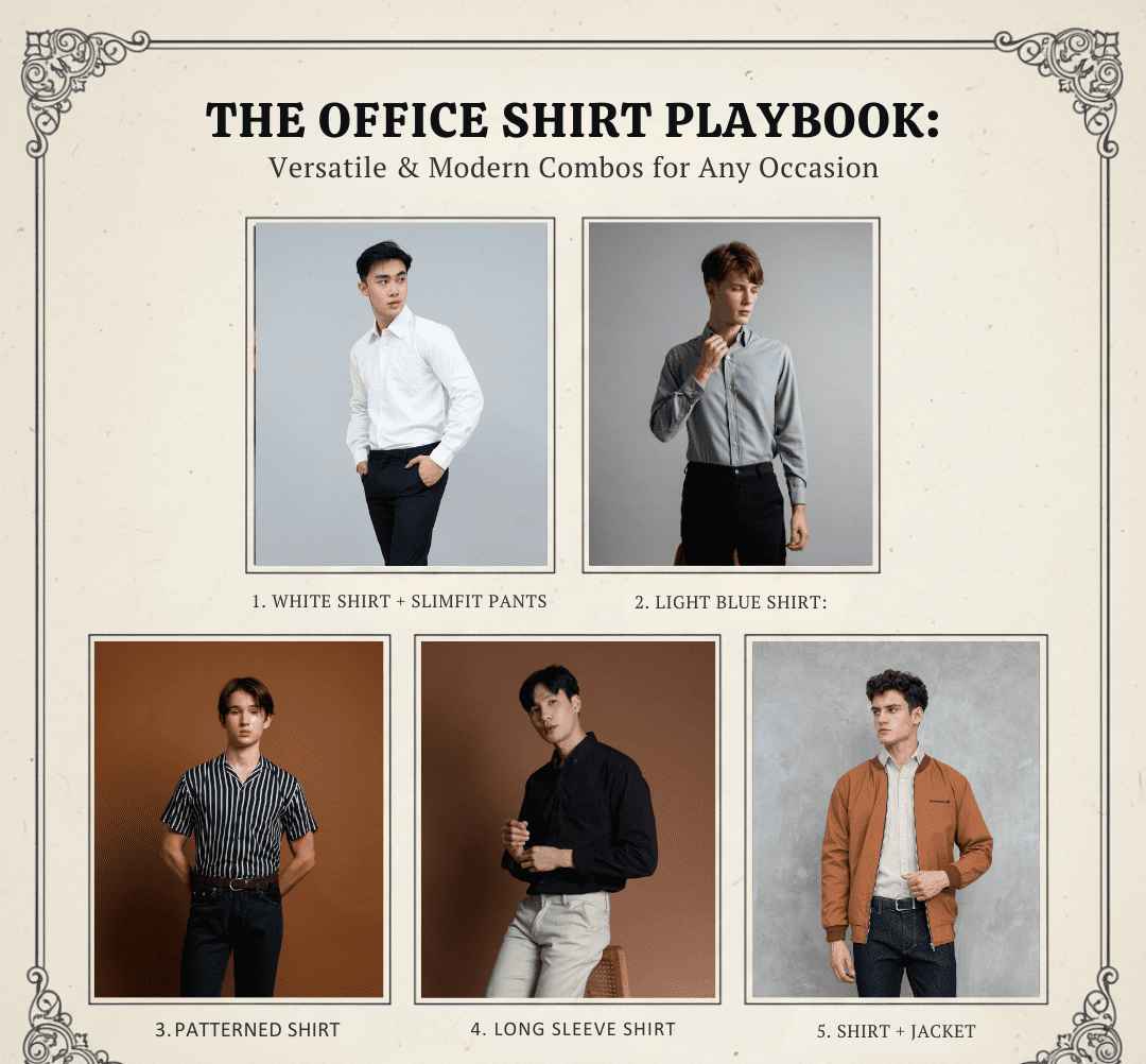 Kemeja jadi andalan utama pria untuk tampilan kantor karena mudah dipadukan dan selalu memberi kesan profesional. Dengan styling yang tepat, kemeja bisa dipakai untuk berbagai suasana kerja formal maupun semi-formal. Berikut beberapa inspirasi outfit kantor yang bisa kamu coba: