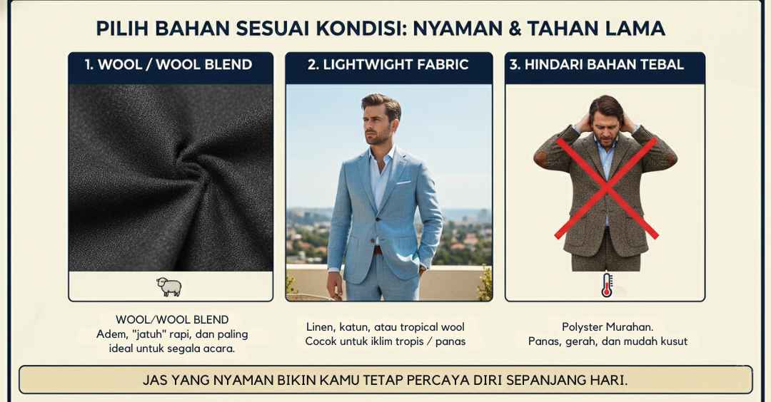 Q: Kalau aku cuma pakai jas sesekali, apa harus pilih bahan premium?