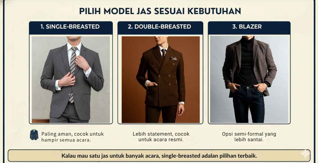Kalau mau satu jas untuk banyak acara, single-breasted adalah pilihan terbaik.