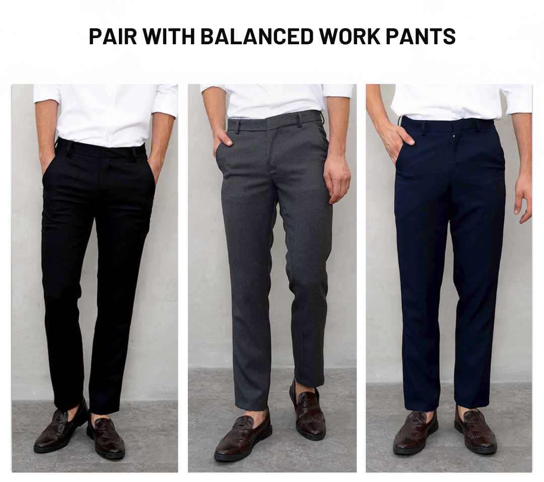 Kemeja polos akan terlihat lebih tegas jika dipadukan dengan celana bahan warna gelap seperti hitam, charcoal, atau navy. Sementara itu, kemeja bermotif halus sebaiknya dipasangkan dengan celana polos agar tampilan tetap rapi.