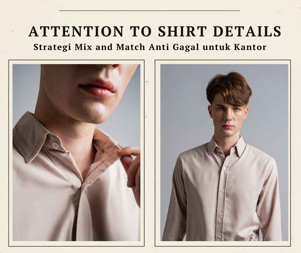 Detail seperti bentuk kerah, manset, dan potongan kemeja sangat memengaruhi kesan akhir. Kemeja yang pas di badan akan selalu terlihat lebih rapi dibandingkan kemeja yang kebesaran.