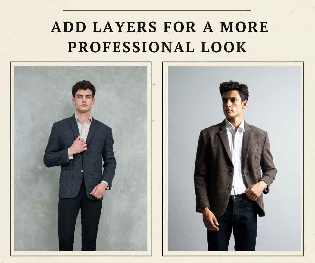 Blazer atau jas ringan dapat langsung meningkatkan tampilan kemeja kantor, terutama untuk meeting, presentasi, atau acara formal di lingkungan kerja.