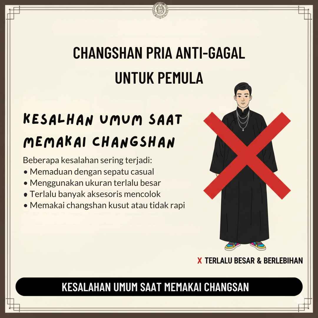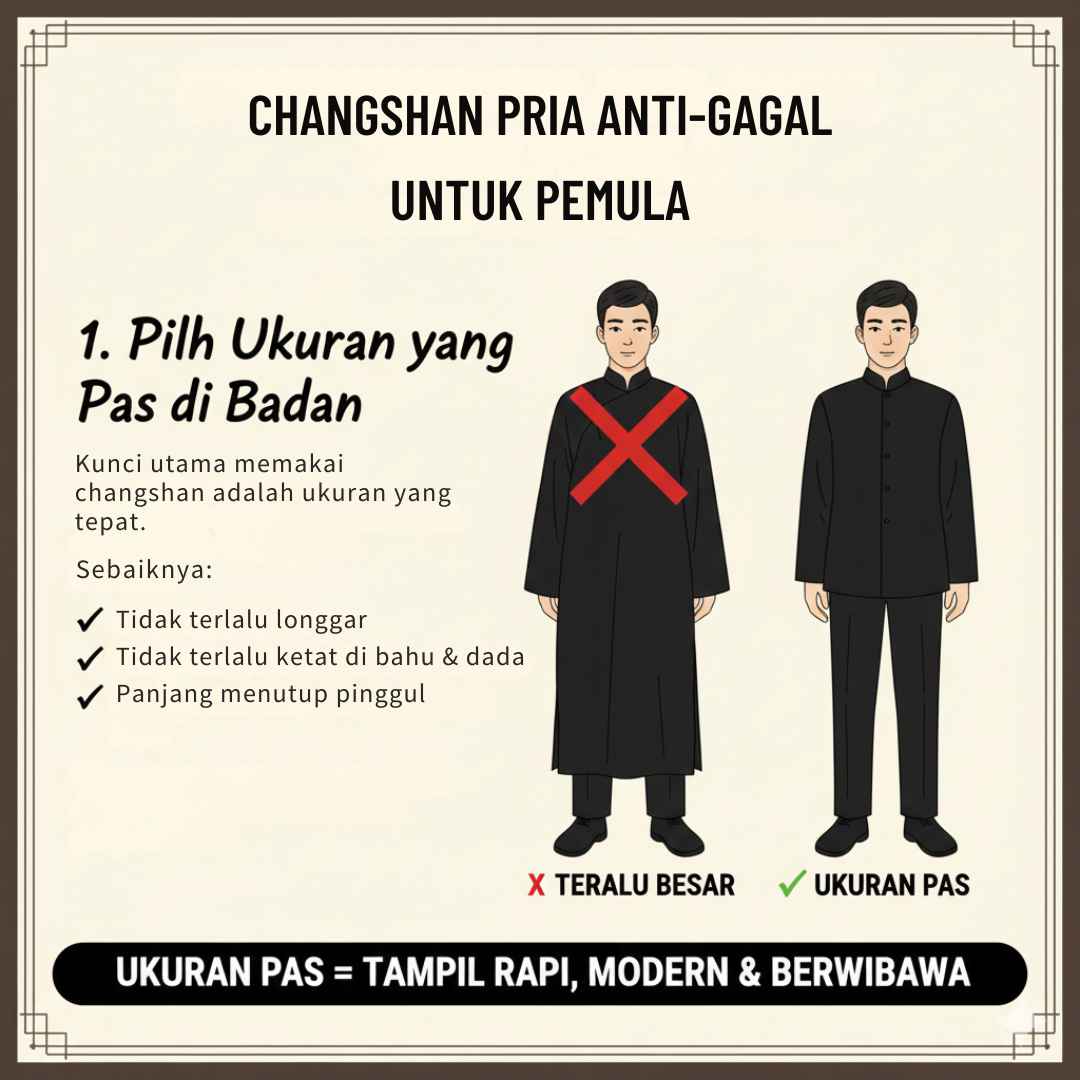 Changshan bukanlah pakaian yang sulit dipakai jika memahami dasar styling-nya. Dengan memilih ukuran yang tepat, warna yang aman, serta memadukannya dengan item sederhana, changshan bisa menjadi outfit yang rapi, elegan, dan penuh karakter. Kunci utamanya adalah menjaga keseimbangan antara tradisional dan modern.
