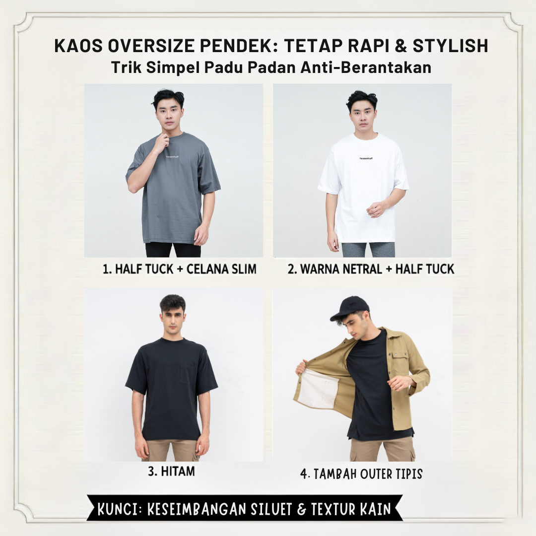 Kaos oversize jadi favorit karena nyaman dan santai. Tapi tanpa styling yang tepat, tampilannya bisa terlihat terlalu berantakan. Berikut cara styling kaos oversize agar tetap rapi dan stylish: