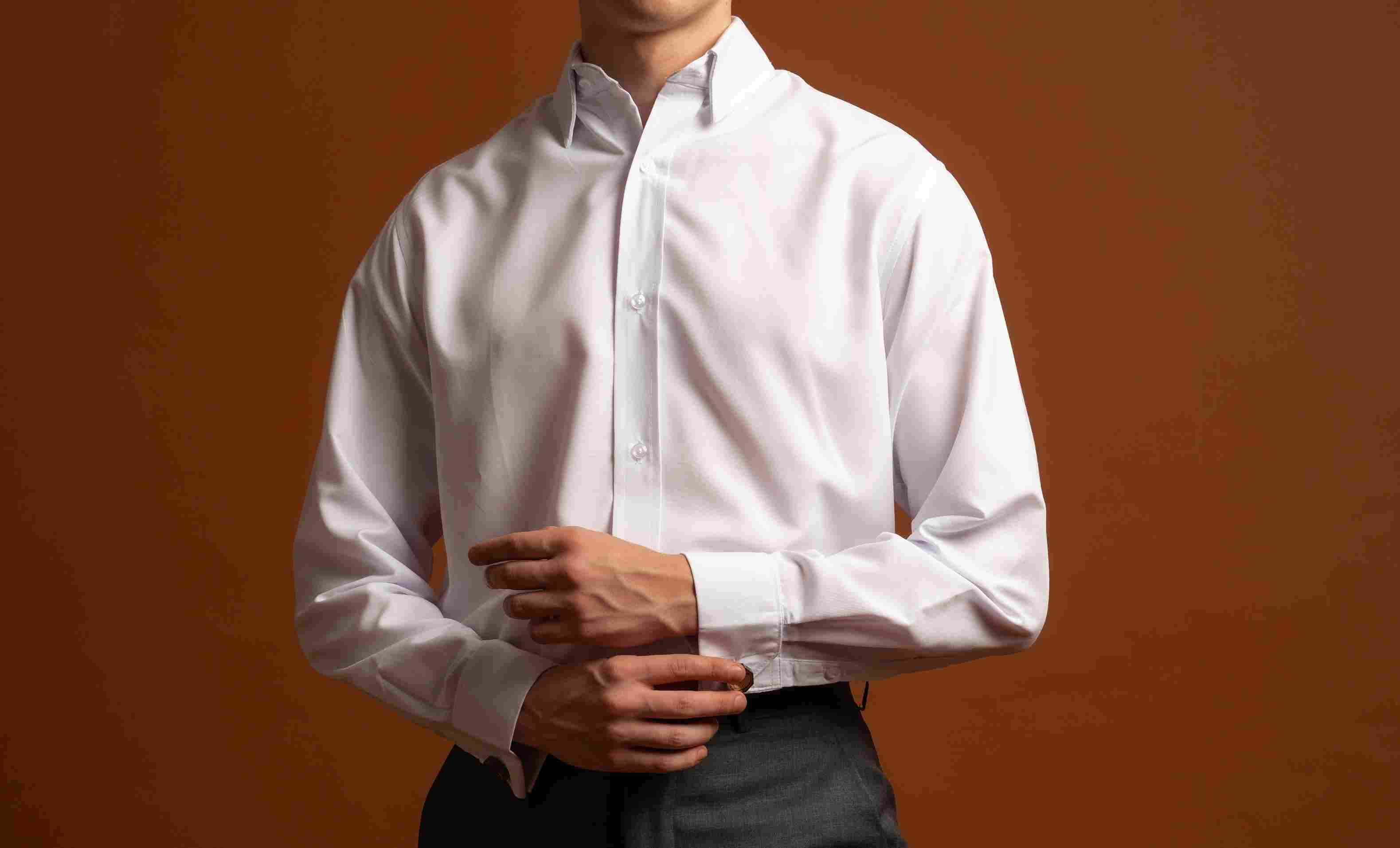 Kemeja formal pria sebaiknya berwarna netral seperti putih atau light blue agar mudah dipadukan dengan jas. Pastikan kerah kemeja berdiri rapi dan ukuran pas di leher.