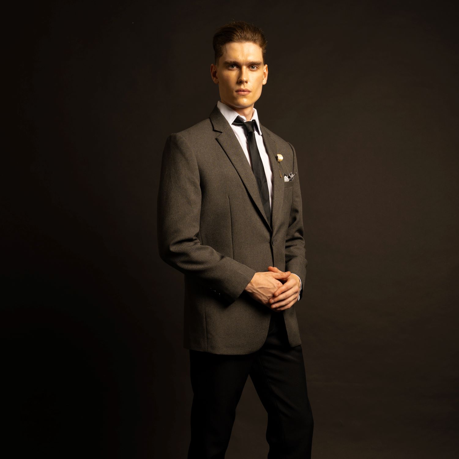 Abu-abu dan hitam menciptakan tampilan formal yang maskulin dan berwibawa.
