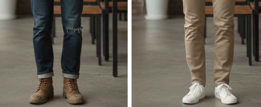 Kesalahan 4: Sepatu Tidak Mendukung Outfit Casual
