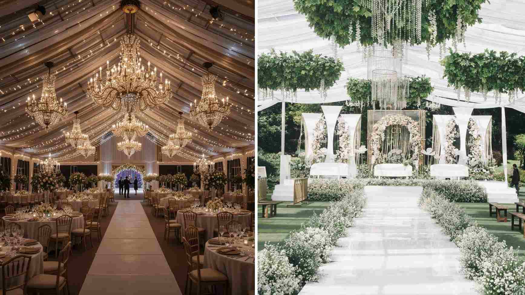 Acara resmi indoor umumnya memiliki pencahayaan yang lebih terkontrol dan suasana yang formal, seperti ballroom hotel, gedung pertemuan, atau aula pernikahan. Sementara itu, acara resmi outdoor berlangsung di ruang terbuka seperti taman, halaman, atau area resort dengan pencahayaan alami yang lebih dominan.