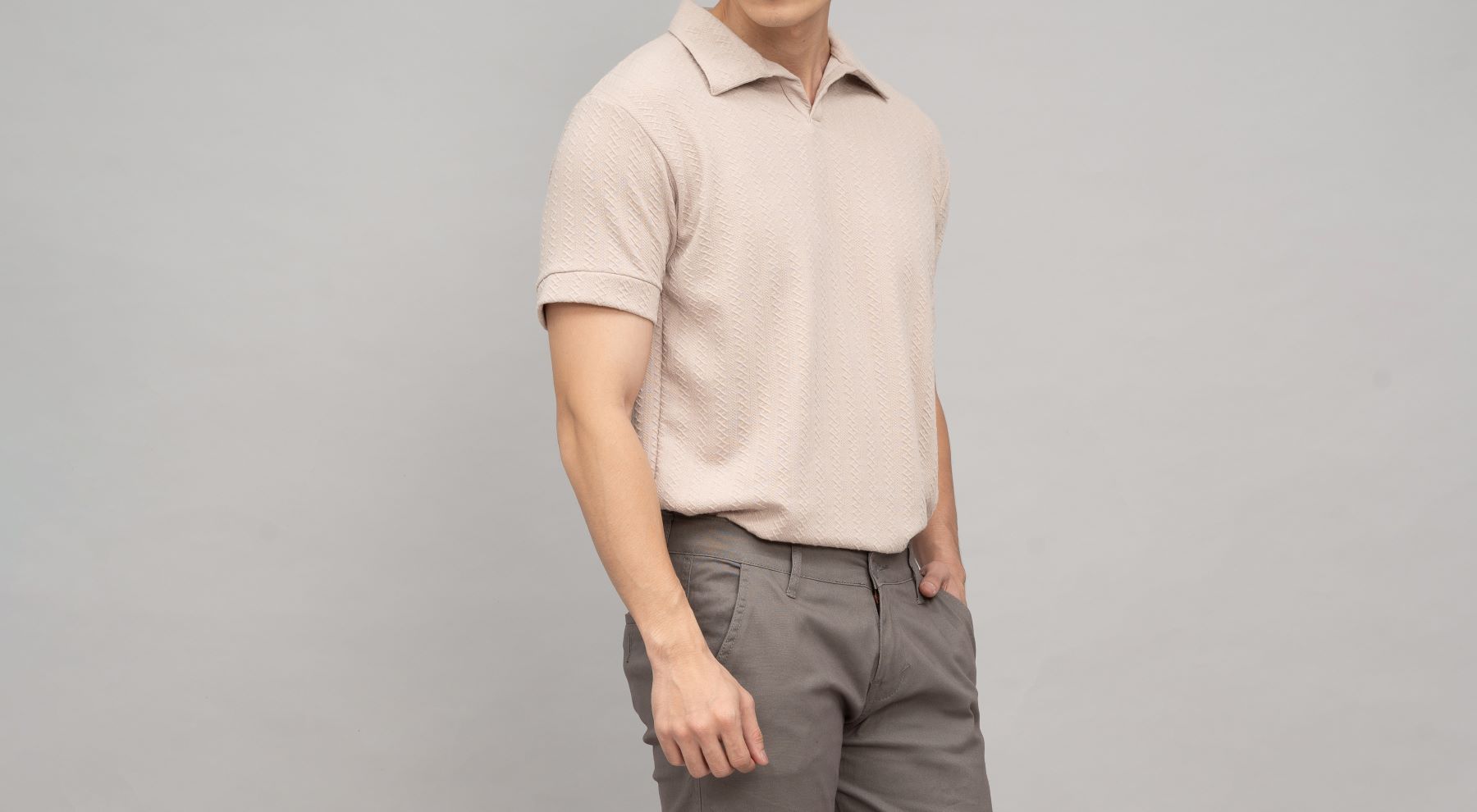 Jika kamu masuk kantor atau bekerja dari kafe, padankan polo shirt polos dengan celana chino berpotongan rapi.