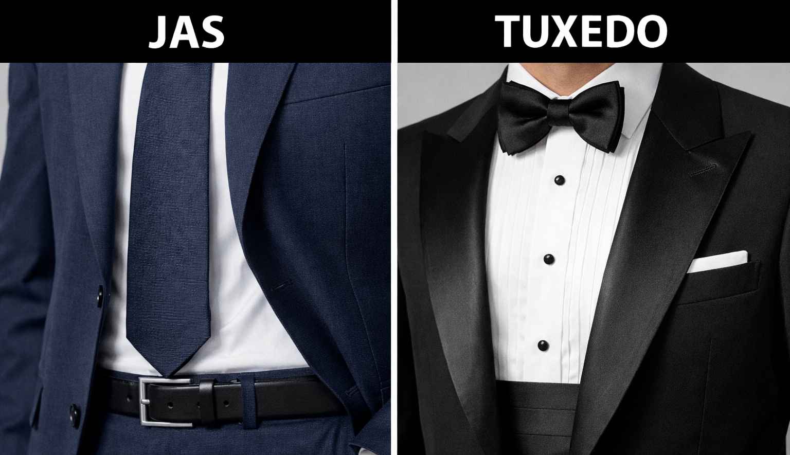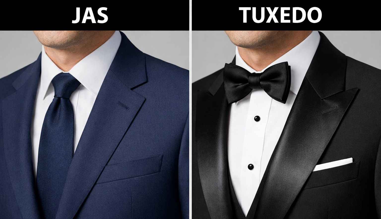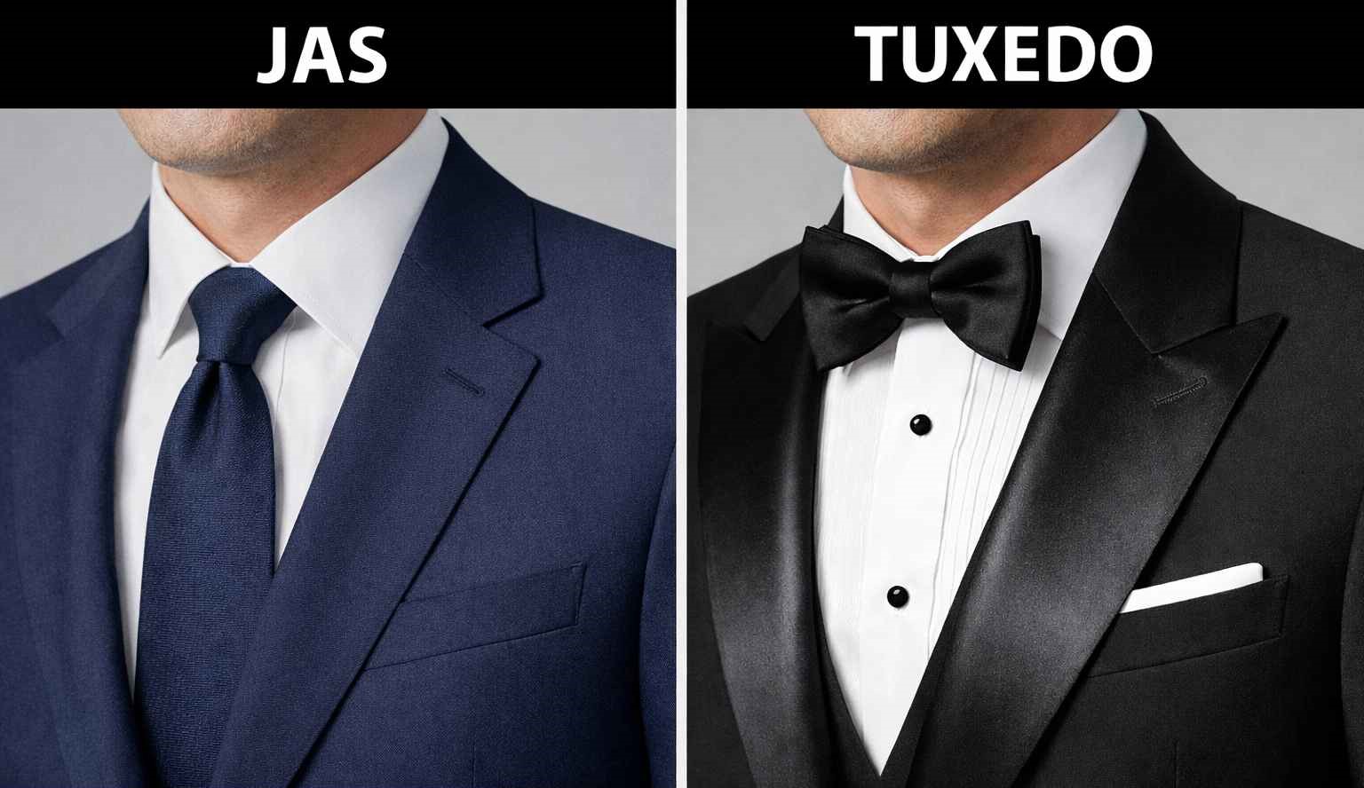 Perbedaan jas dan tuxedo terletak pada tingkat formalitas, detail desain, bahan, dan jenis acara penggunaannya. Jas cocok untuk berbagai acara formal hingga semi formal, sedangkan tuxedo digunakan khusus untuk acara resmi dengan dress code tinggi seperti black tie atau gala dinner.