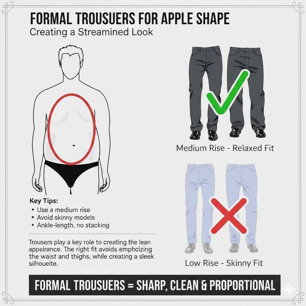 Celana terlalu ketat akan memperjelas bentuk paha dan perut, sementara terlalu longgar akan terlihat kurang rapi.