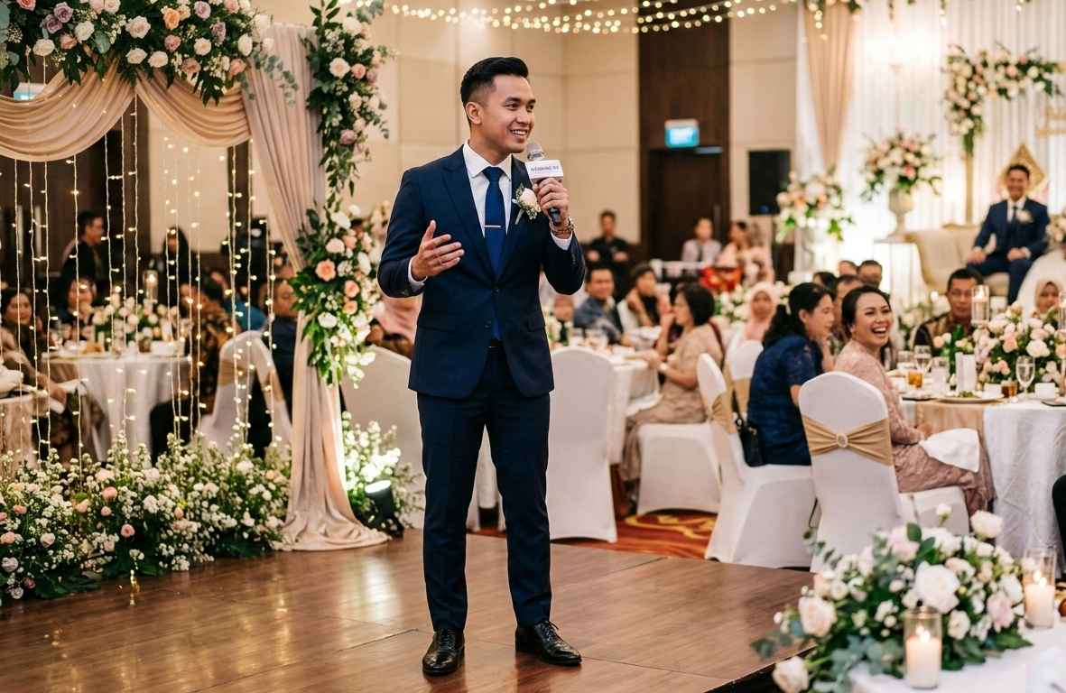 Outfit MC pria bukan hanya soal tampil formal, tetapi tentang menyesuaikan diri dengan karakter acara. Wedding membutuhkan sentuhan elegan, corporate menuntut profesionalitas, dan event hiburan memberi ruang fleksibilitas.