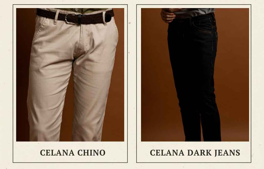 Dark denim dengan clean cut juga bisa menjadi pilihan untuk gaya smart casual. Proporsi panjang celana perlu diperhatikan agar tidak menumpuk di bagian bawah, karena detail kecil seperti ini sangat memengaruhi kesan keseluruhan outfit.