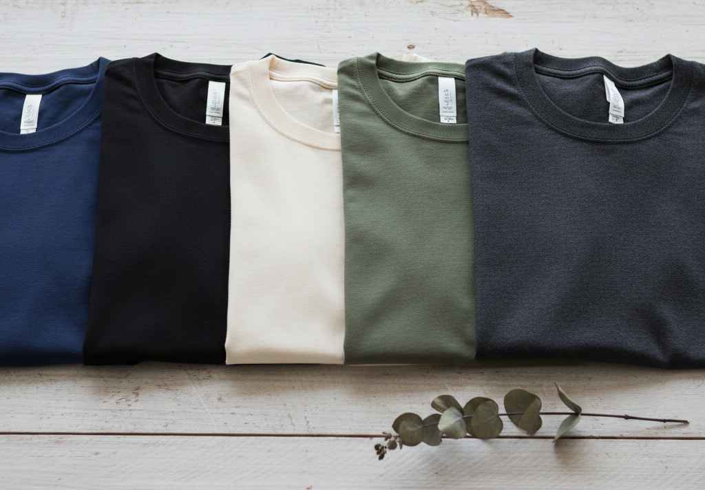 Warna memegang peran penting dalam menciptakan kesan mewah. Kaos polos berwarna navy, hitam, putih tulang, olive, dan charcoal cenderung terlihat lebih mahal dibanding warna terlalu terang atau neon. Warna-warna ini mudah dipadukan dan memberi kontras yang proporsional dengan berbagai tone kulit.
