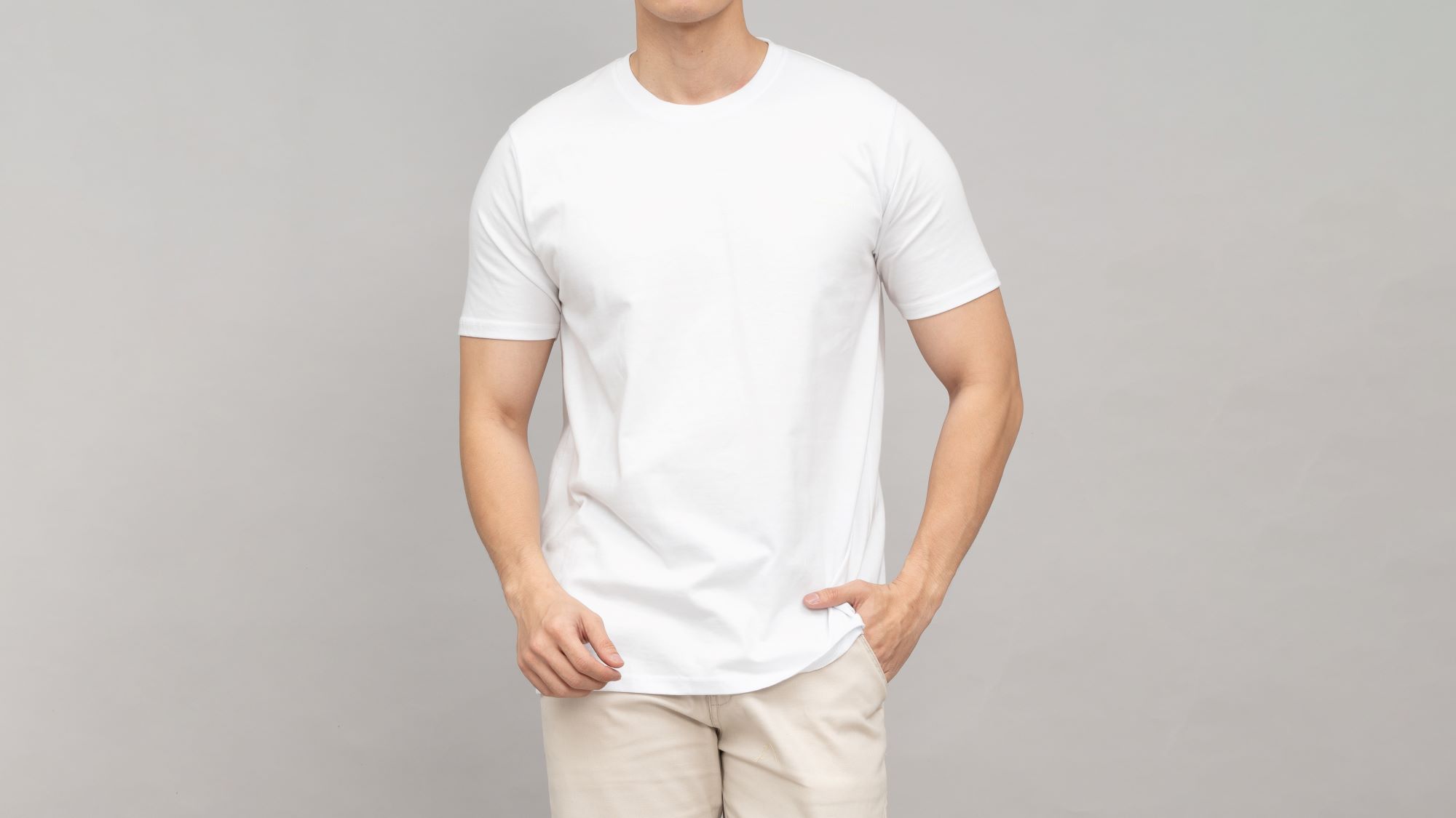 Kaos polos dengan bahan tebal dan fit yang pas di bahu menciptakan kesan tegas tanpa terlihat berusaha terlalu keras. Warna seperti navy, putih tulang, olive, dan hitam memberi kesan dewasa serta mudah dipadukan.