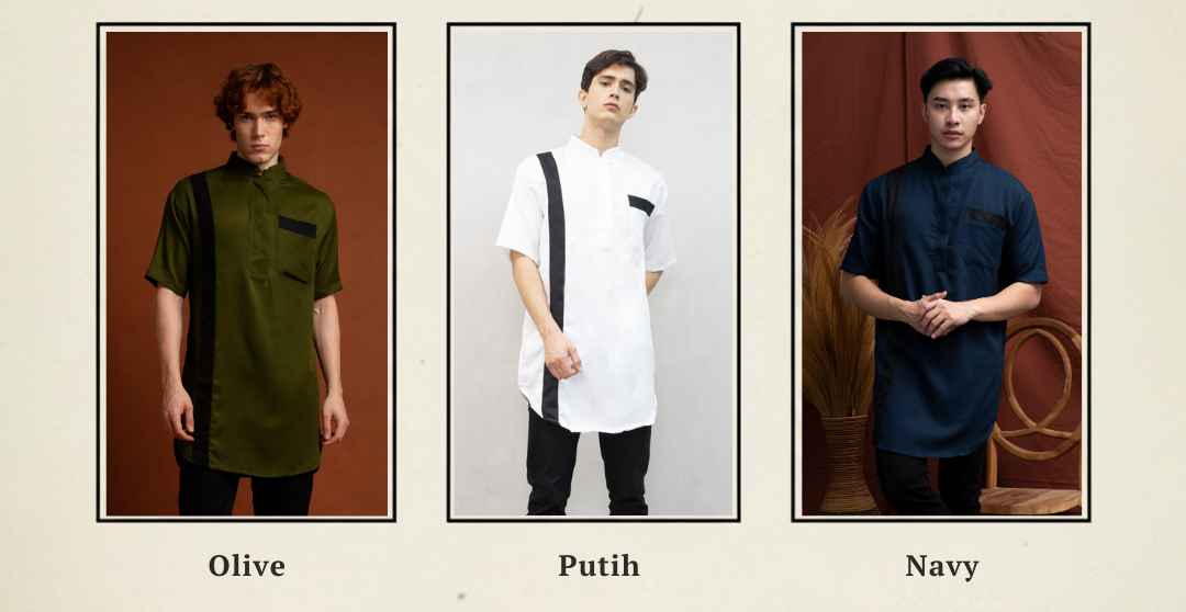 Warna sage dan olive menghadirkan kesan fresh dan maskulin. Putih tulang tetap menjadi warna paling aman karena terlihat bersih dan premium. Navy cocok bagi pria yang ingin tampil lebih dewasa dan sedikit formal.