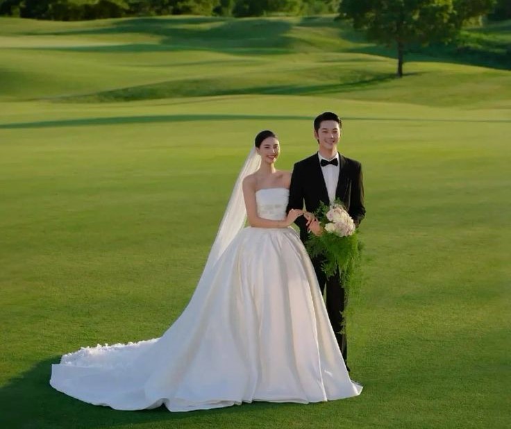 - Green Suit – Pilihan modern yang menyatu dengan suasana alam outdoor dan terlihat unik di foto