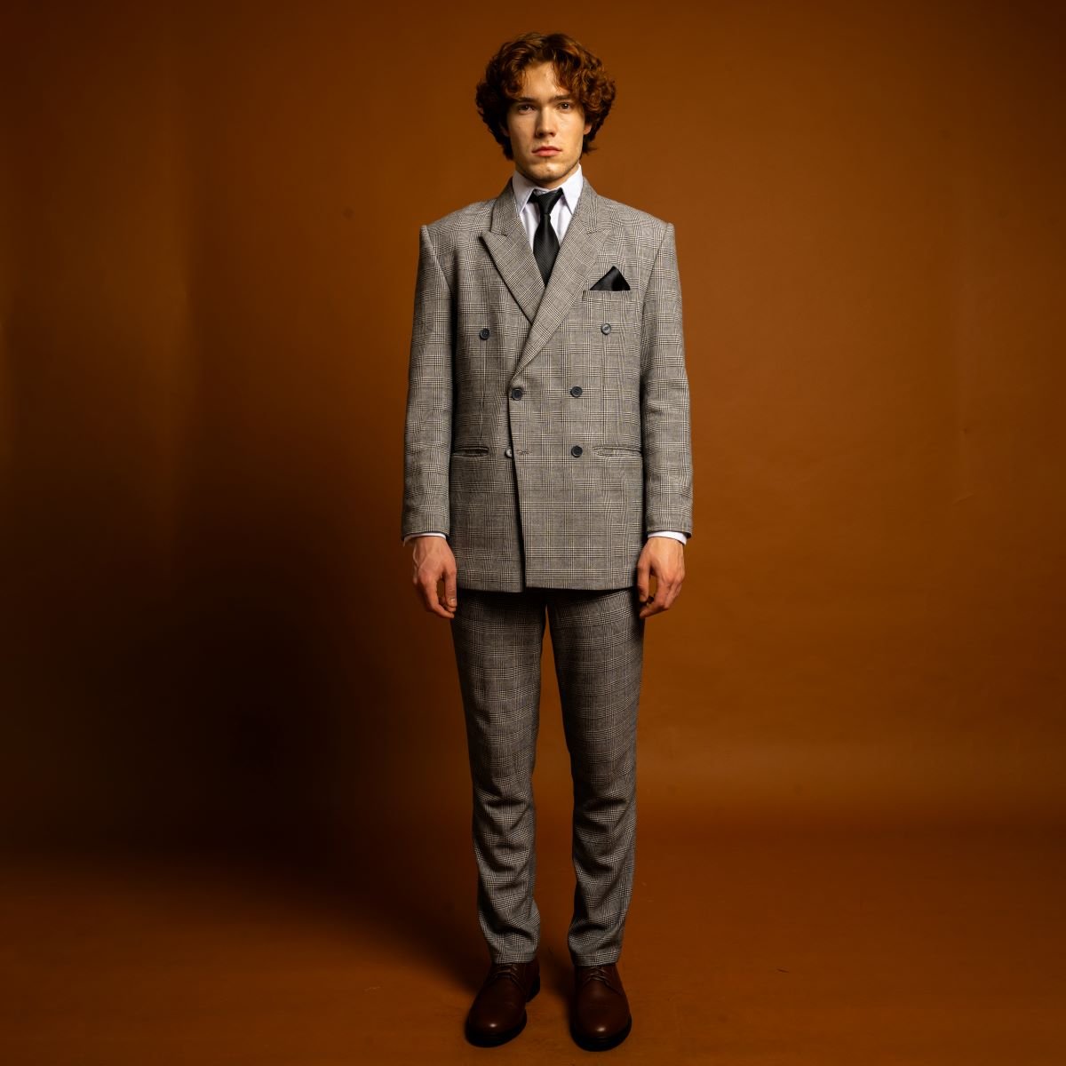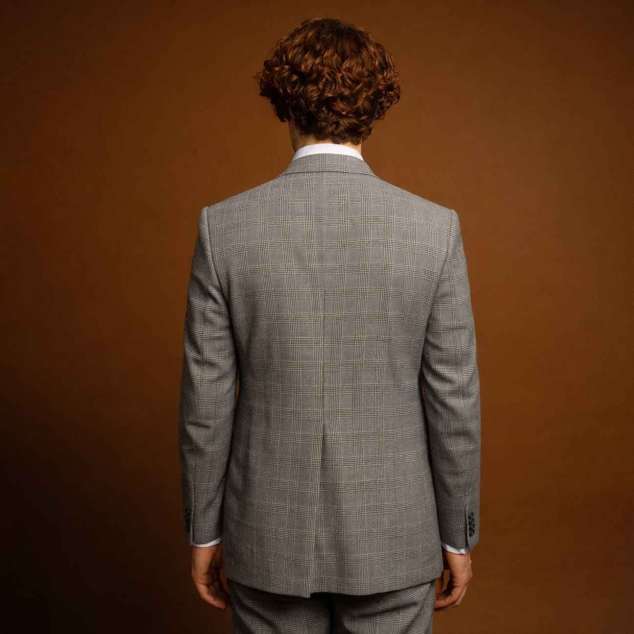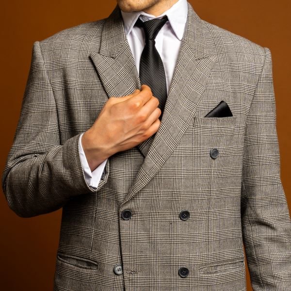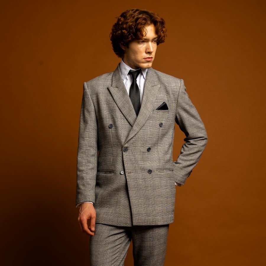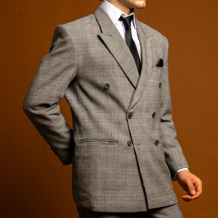 Jas abu pattern double breasted menghadirkan tampilan klasik dengan sentuhan motif yang elegan. Desain kancing ganda menciptakan siluet tegas dan berwibawa, sementara pattern halus pada warna abu memberi karakter stylish yang tetap formal.