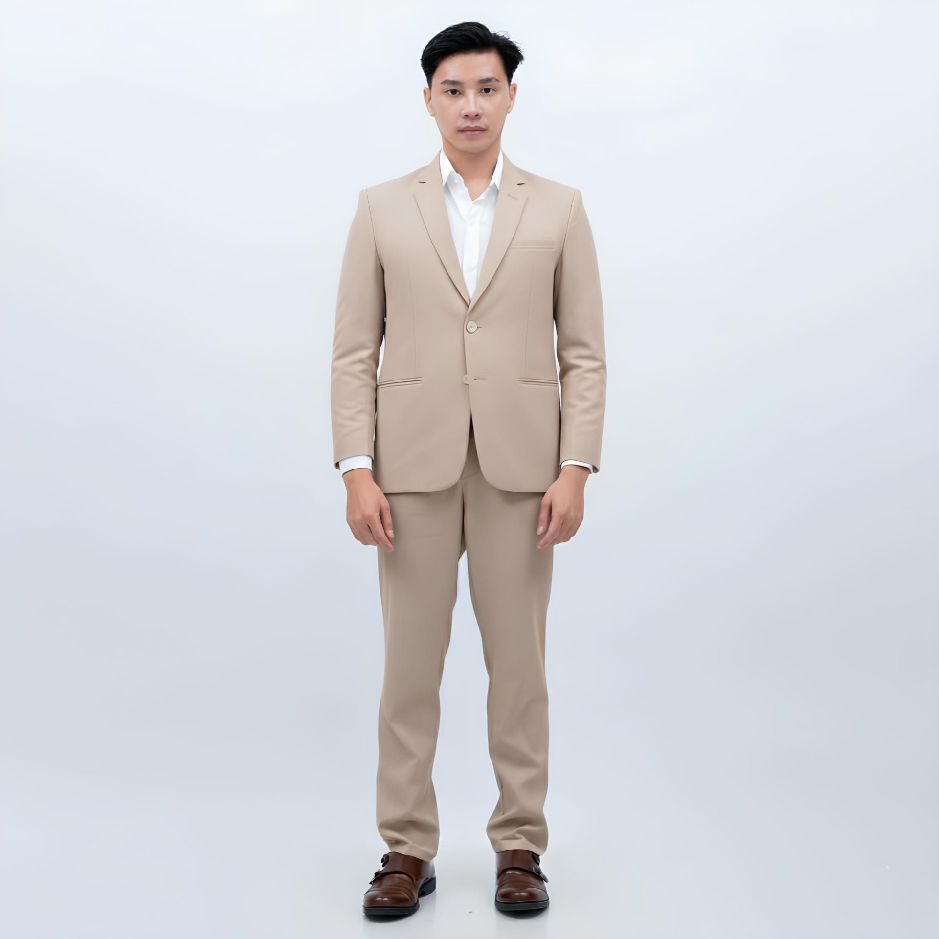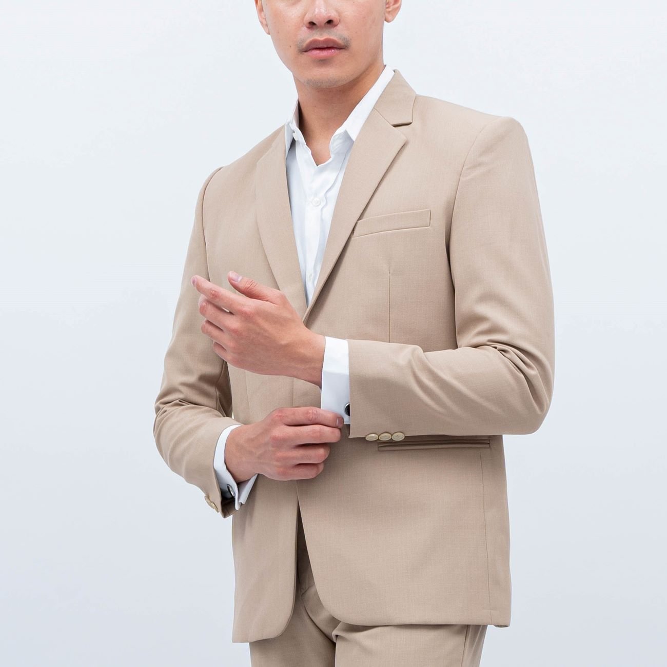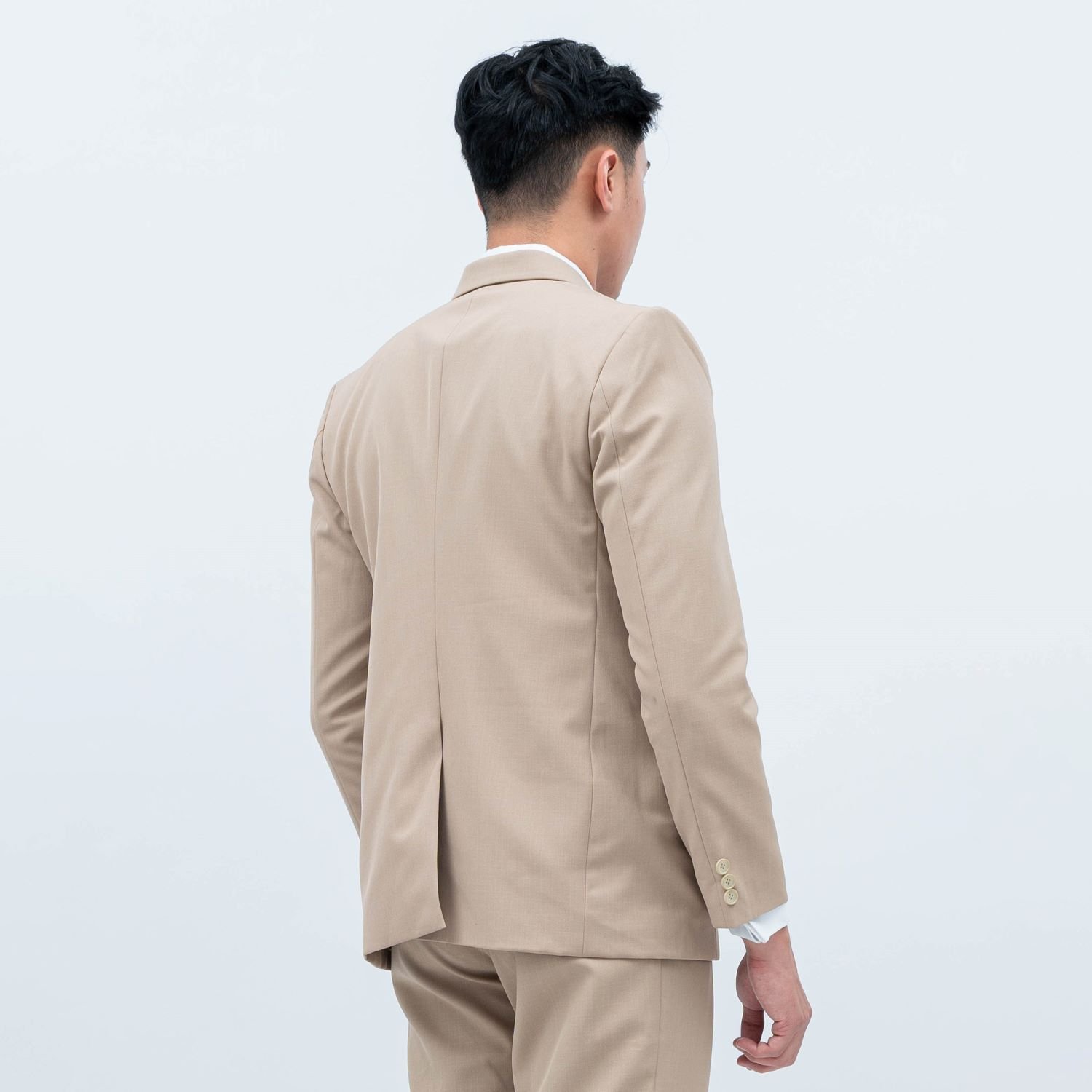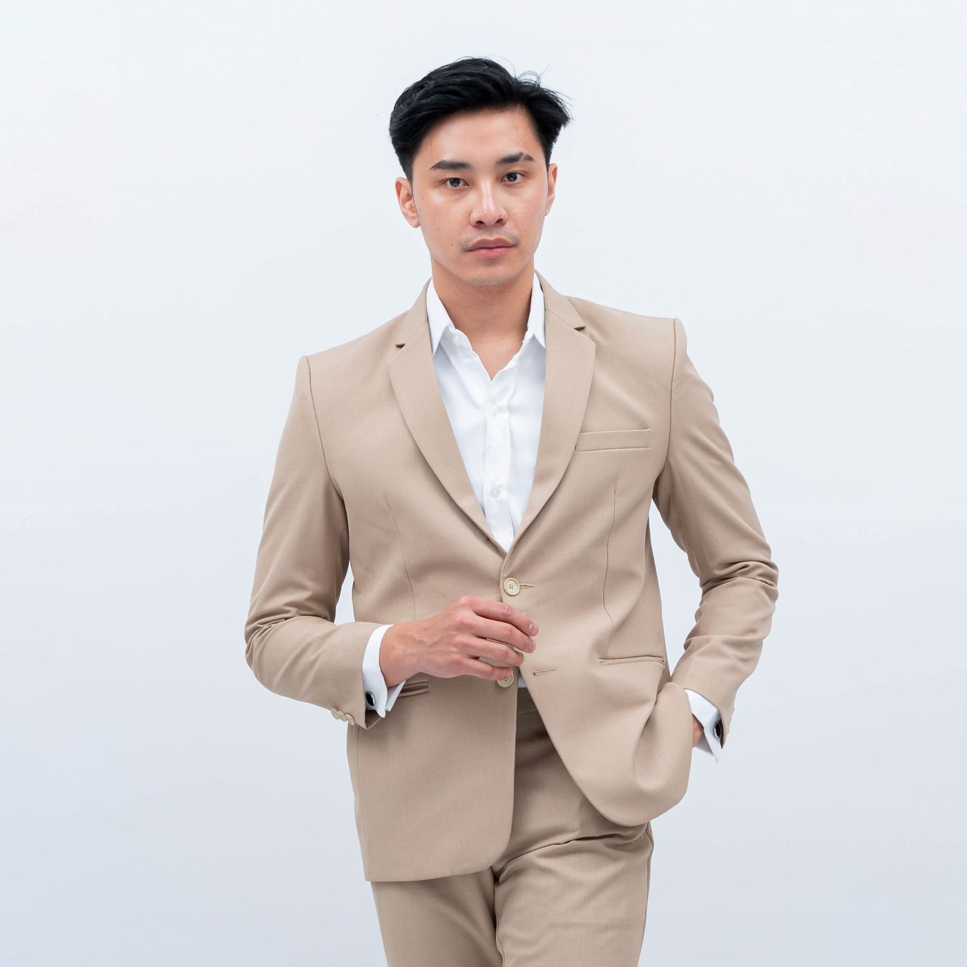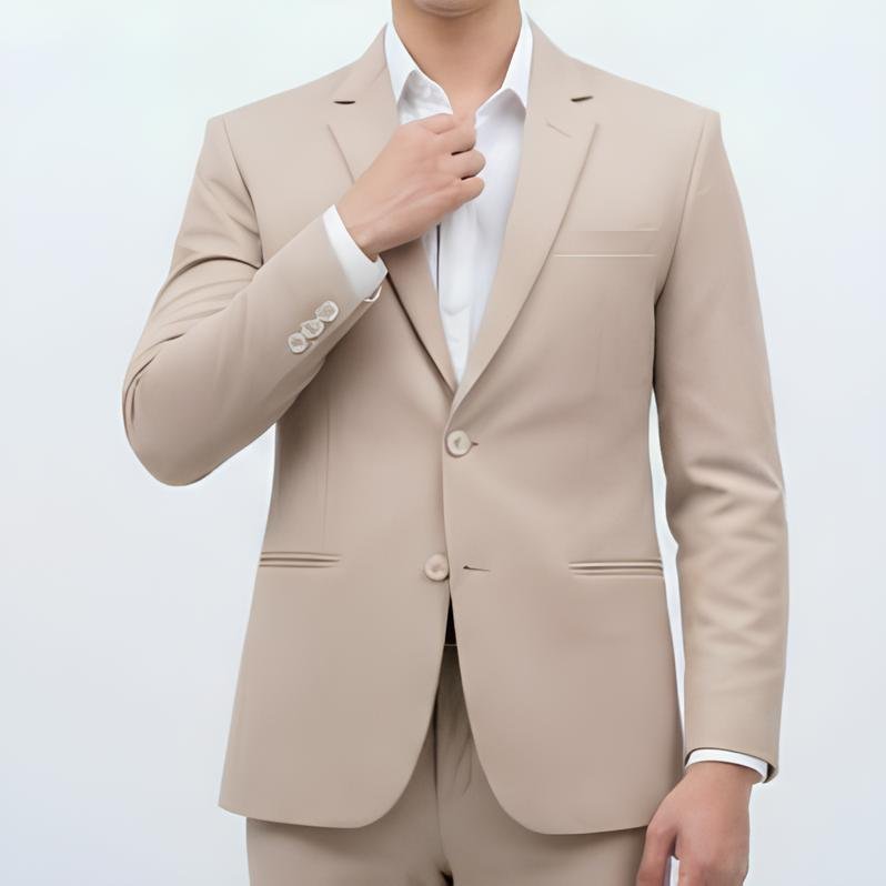 Jas krem menghadirkan kesan hangat, elegan, dan modern. Warnanya yang soft membuat tampilan terlihat lebih fresh dan cocok untuk wedding, engagement, maupun acara formal outdoor.