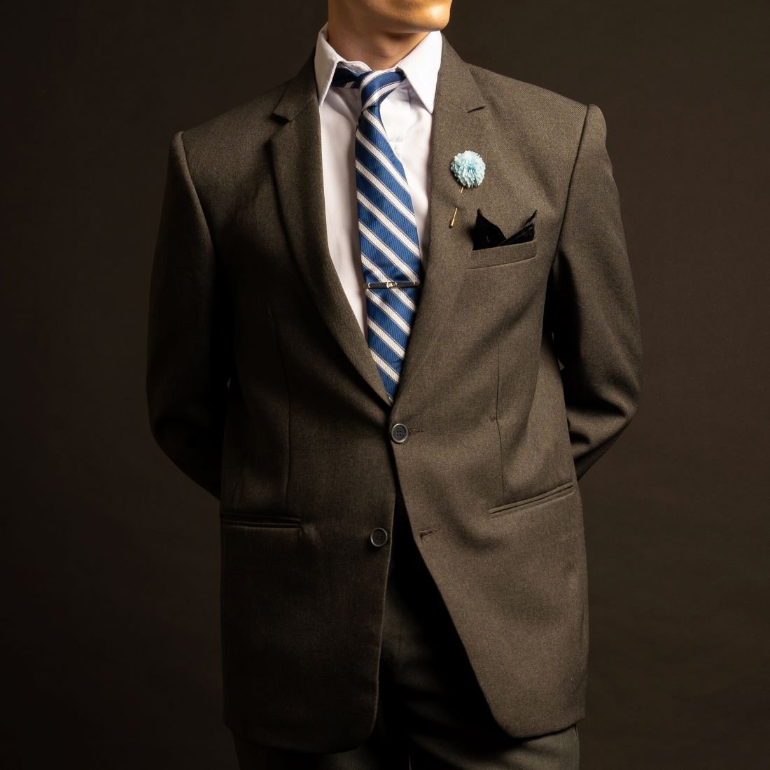 Jas dark grey memberikan kesan formal yang modern dan elegan tanpa terlihat terlalu kaku. Warnanya netral, mudah dipadukan dengan berbagai warna kemeja dan aksesoris, sehingga cocok untuk acara resmi maupun semi-formal.