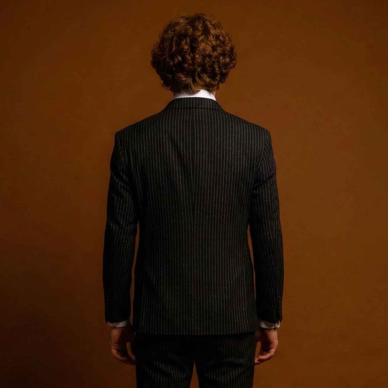 Jas hitam pinstripe menghadirkan kesan profesional, tegas, dan klasik. Detail garis halusnya memberi dimensi elegan serta tampilan lebih berkarakter, cocok untuk acara formal, bisnis, hingga momen spesial yang menuntut kesan berwibawa.