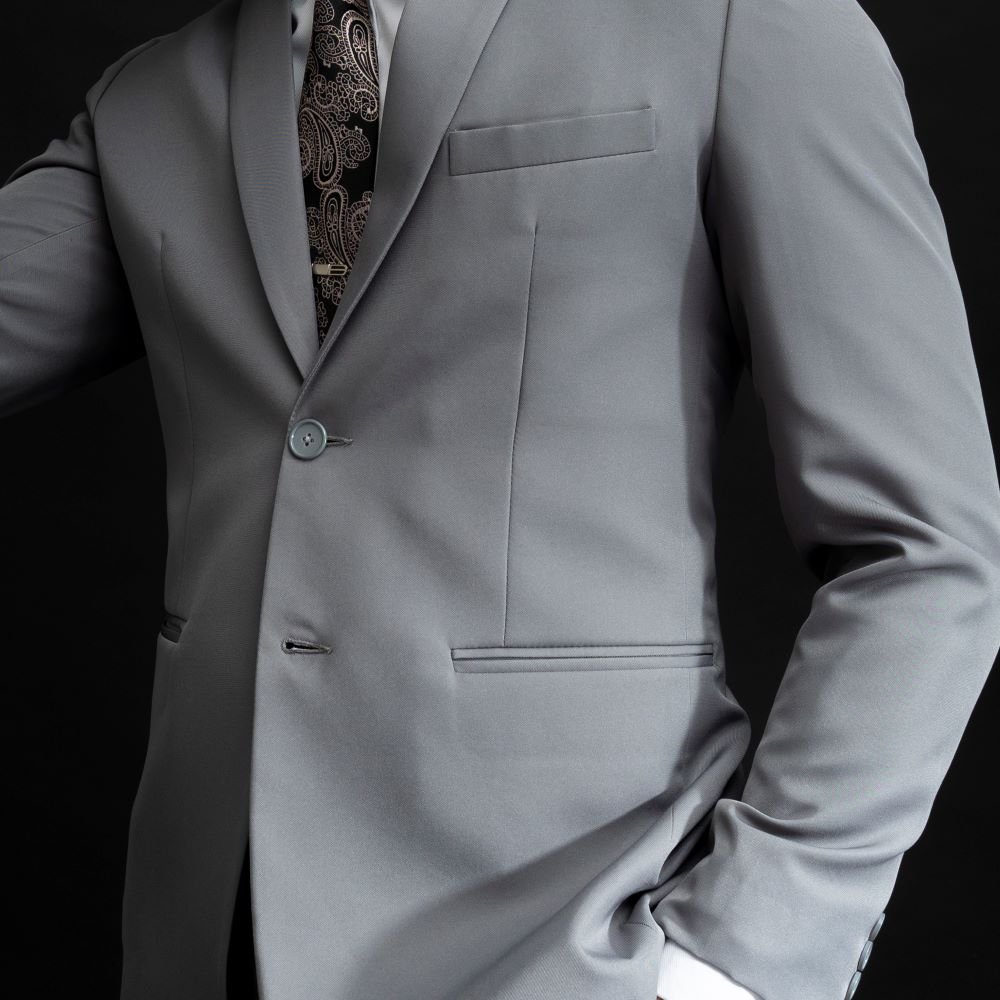 Jas light grey memberikan kesan formal yang ringan, modern, dan elegan. Warna abu-abu terang ini cocok untuk acara siang hari, wedding, maupun event semi-formal karena tampilannya terlihat fresh dan tidak terlalu kaku.