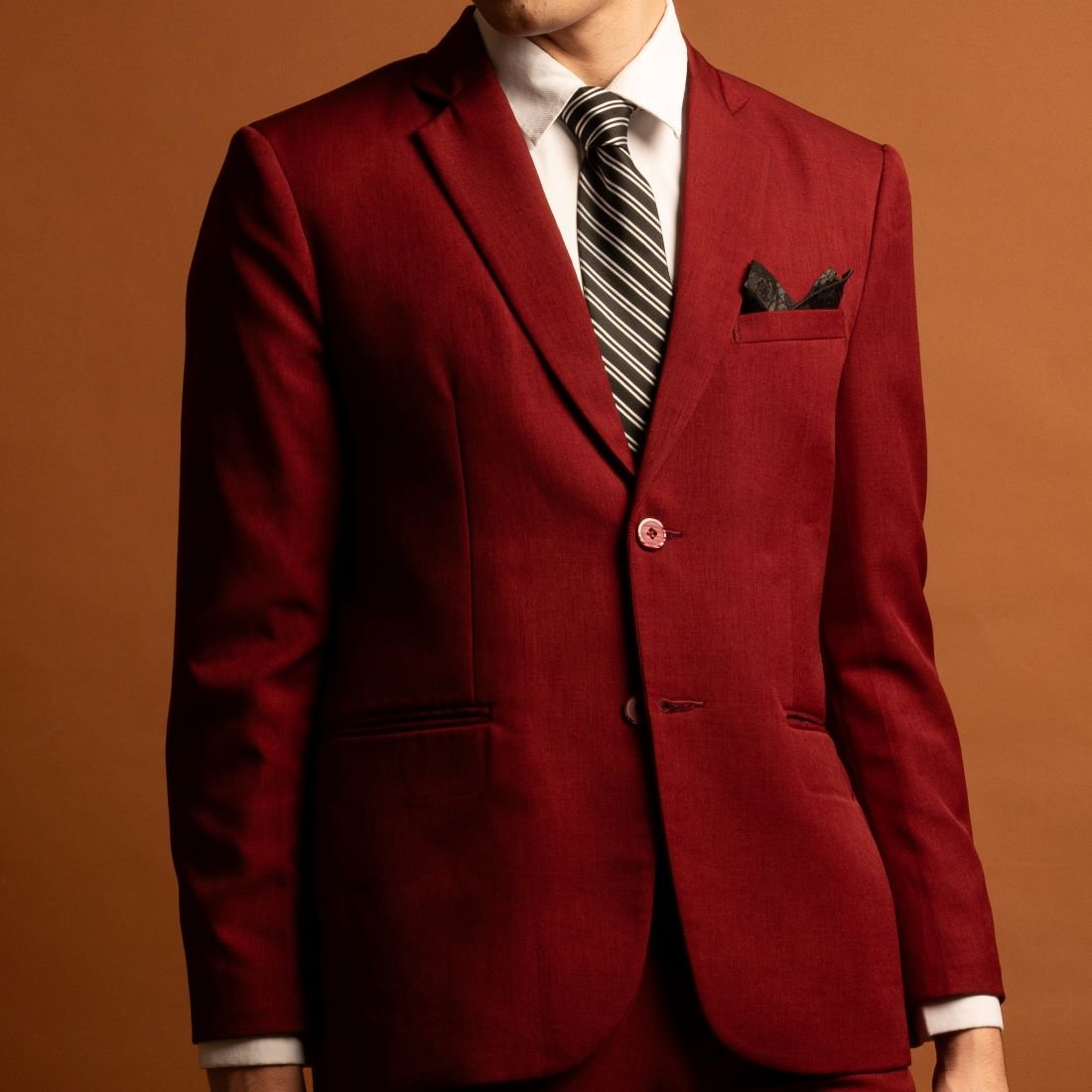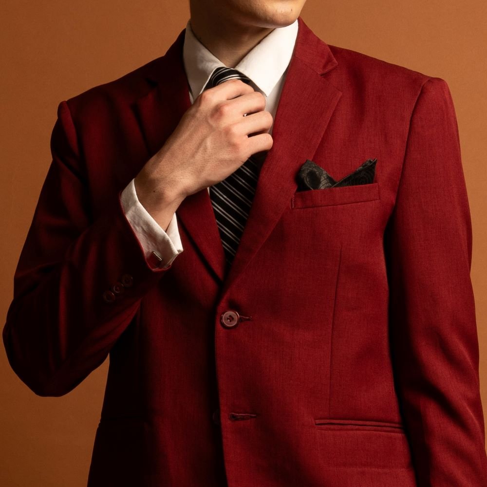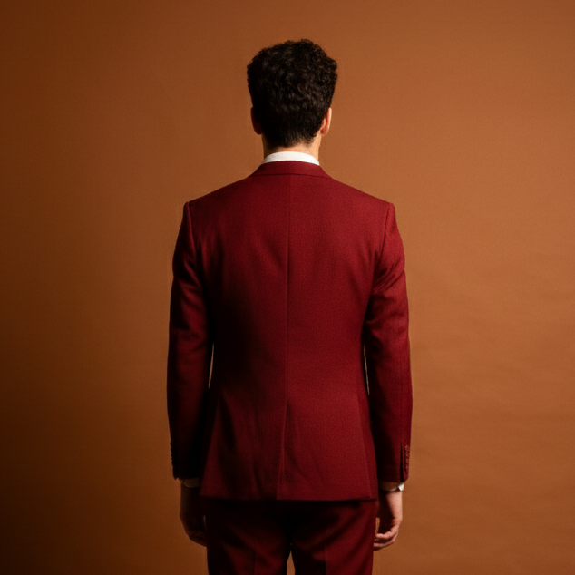 Jas maroon memberikan kesan bold, elegan, dan penuh karakter. Warna merah tua ini cocok untuk yang ingin tampil standout di wedding, engagement, atau acara formal spesial tanpa kehilangan kesan classy.